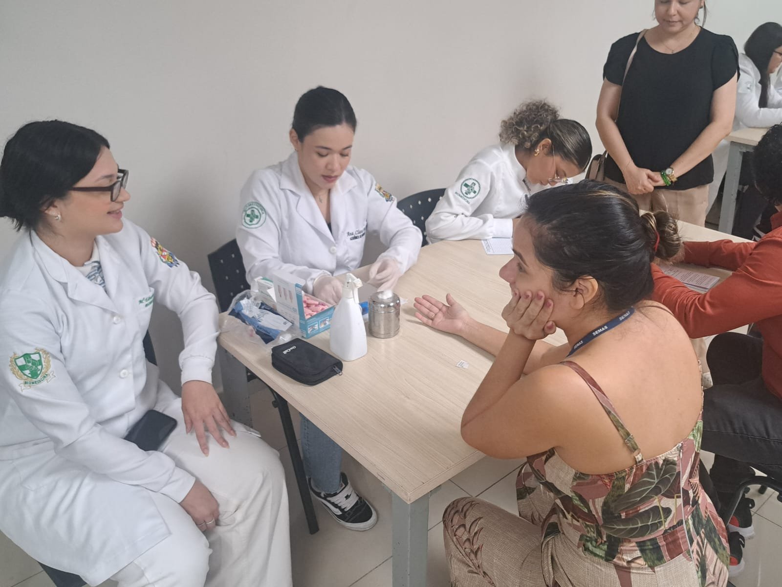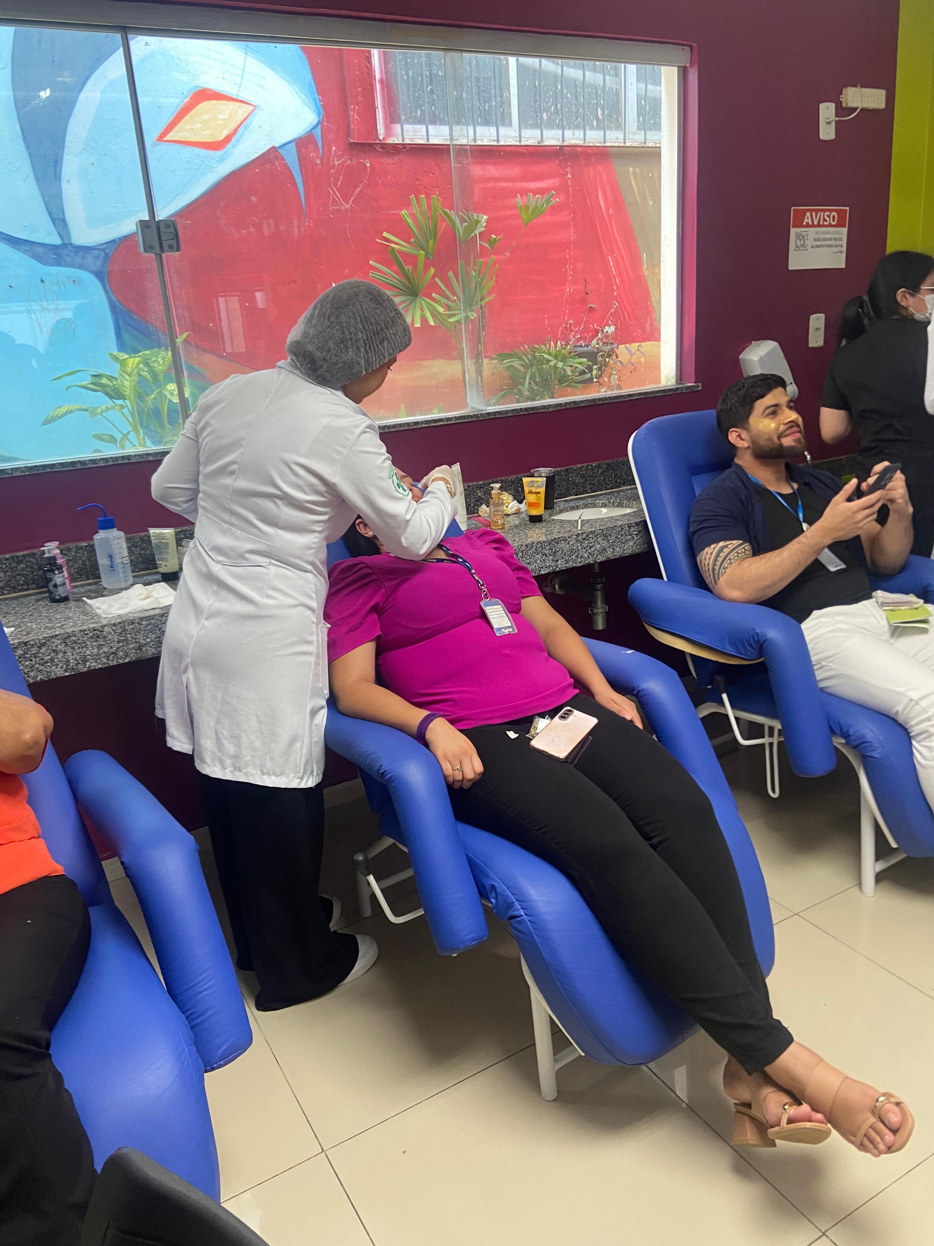 Durante a ação, realizada na sede da SEMAS, os alunos ofereceram gratuitamente serviços como ventosaterapia, auriculoterapia, aferição da pressão arterial, teste de glicemia digital e estética facial. O atendimento ocorreu por ordem de chamada e teve boa adesão dos servidores. Na ocasião, também foram apresentados temas relacionados à saúde e à qualidade de vida.